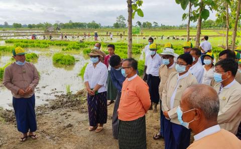 မင်းဘူး(စကု)မြို့နယ်တွင် ကိုဗစ်-၁၉ စီးပွားရေးကုစားမှုအစီအစဉ်ဖြင့် မိုးစပါးမျိုးစေ့ထုတ် စိုက်ခင်း ကွင်းသရုပ်ပြပွဲကျင်းပ