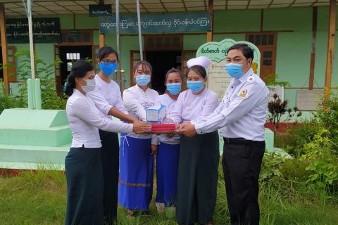 ကာလိမြို့အခြေခံပညာအထက်တန်းကျောင်း၌ ကိုဗစ်-၁၉ ရောဂါကြိုတင်ကာကွယ်ရေး ပစ္စည်းများ လှူဒါန်း
