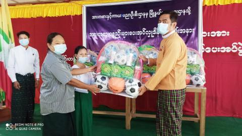 ပေါင်းတည်မြို့နယ်တွင် အားကစားနှင့်ကာယပညာဦးစီးဌာနမှ မြို့နယ်ပညာရေးဌာနသို့ အားကစား ပစ္စည်းများ ပေးအပ်လှူဒါန်း