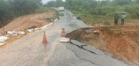 မိုးသည်းထန်စွာရွာသွန်းမှုကြောင့် ကရသူရိမြို့၊ အောင်ဇင်ဘာဆီအုန်းကုမ္ပဏီအနီး ကော့သောင်း−ဘုတ်ပြင်း ပြည်ထောင်စုကားလမ်းမကြီး မြေကျွံ့ကျ၍ လမ်းကျိုးမှုဖြစ်ပွား