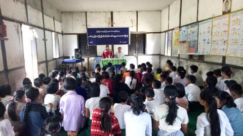 ကချင်ပြည်နယ်၊ မိုးညှင်းခရိုင်၊ ဟိုပင်မြို့ မူလွန်−မြစံပယ်ကျောင်း၌ စာဖတ်ရှိန်မြှင့်တင်ရေး နယ်လှည့် စာကြည့်တိုက်နှင့် ကလေးအလုပ်သမား ပပျောက်ရေး အသိပညာပေး ဟောပြောခြင်းကို ယမန်နေ့ မွန်းလွှဲ ၁ နာရီက ကျင်းပ ပြုလုပ်ခဲ့သည်။