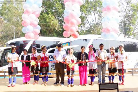 ကယားပြည်နယ် အတွင်းရှိ မိဘပြည်သူများ ခရီးသွားလာ လွယ်ကူအဆင်ပြေစေရန်အတွက် မိုးကောင်းကင် အဆင့်မြင့် ခရီးသည်ပို့ဆောင်ရေး ဘောလခဲ−ဒီးမော့ဆို−လွိုင်ကော်−ရန်ကုန် မော်တော်ယာဉ်လိုင်းသစ် ဖွင့်လှစ်ခြင်းကို ယနေ့နံနက် ၉ နာရီက လွိုင်ကော်မြို့၊ နောင်ယားကန်အနီး ၊ YGN Food House ၌ ကျင်းပပြုလုပ်သည်။