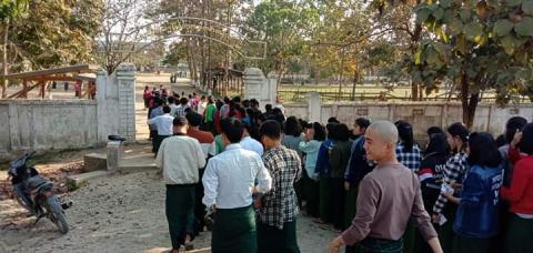 ကချင်ပြည်နယ် မြစ်ကြီးနားခရိုင် တနိုင်းမြို့နယ်အတွင်း စာစစ်ဌာန (၂) ခုတွင် တက္ကသိုလ်ဝင် စာမေးပွဲကို ယနေ့ နံနက် (၉) နာရီမှ စ၍ အင်္ဂလိပ်စာဘာသာရပ်အား ကျောင်းသား/သူများ အေးချမ်းတည်ငြိမ်စွာ လာရောက်ဖြေဆိုလျက်ရှိကြောင်း သိရ သည်။