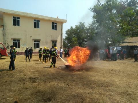 ကြာအင်းဆိပ်ကြီးမြို့၌ မီးဘေးအန္တရာယ်ကြိုတင်ကာကွယ်ရေးအသိပညာပေးလက်တွေ့မီးငြှိမ်းသတ်ခြင်းသရုပ်ပြသ