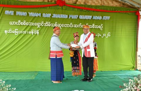 ကချင်ပြည်နယ်အစိုးရအဖွဲ့က ဒေသတွင်း နယ်မြေအခြေအနေအရ ယာယီတိမ်းရှောင်လာသော မိသားစုများအား နေရာချထား ထောက်ပံ့ပေးလျက်ရှိရာ မန်ခိန်ရပ်ကွက်အတွင်း အထွေထွေအုပ်ချုပ်ရေးဦးစီးဌာန(ရုံးချုပ်)ပိုင် မြေနေရာတွင် နေရာချထားပေးခဲ့သော နောင်ချိန်ကျေးရွာမှ အိမ်ထောင်စုများက ယာယီခိုလှုံရာအိမ်ရာအသစ်ရရှိခြင်း ကျေးဇူးတော်ချီးမွှမ်းဆုတောင်းပွဲကို အဆိုပါ ယာယီအိမ်ရာစခန်း၌ကျင်းပရာ ပြည်နယ်ဝန်ကြီးချုပ် ဦးခက်ထိန်နန် တက်ရောက်အားပေးသည်။