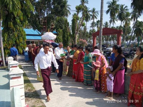 ရန်ကုန်တိုင်းဒေသကြီး၊ ရန်ကုန်တောင်ပိုင်း ခရိုင်ကိုကိုးကျွန်းမြို့နယ်၌ ယမန်နေ့ နံနက် ၉ နာရီခွဲအချိန်တွင် ကိုကိုးကျွန်းမြို့နယ် သာသနာမဏ္ဍိုင်ကျောင်းအတွင်းရှိ ရဟန်းနှင့် ရှင်အပါး(၅၉)ပါးအား အမှတ်၃စစ်ဗျူဟာမှူး အမှတ်၂၈ ရေတပ်အခြေစိုက်စခန်းမှ အရာရှိစစ်သည် မိသားစုများ၊ ကိုကိုးကျွန်းမြို့နယ် စီမံအုပ်ချုပ်ရေးဥက္ကဋ္ဌနှင့် အဖွဲ့ဝင်များ၊ .မြန်မာနိုင်ငံရဲတပ်ဖွဲ့မှ ရဲမှူးနှင့် မိသားစုများ.၊ မီးသတ်တပ်ဖွဲ့ဝင်မိသားစုများ၊ ဒေသခံပြည်သူများ ကိုကိုးကျွန်းမြို့နယ်လေတပ်စခန်းမှ အရာရှိသည်များ ဆွမ်းဆန် စိမ်းလောင်းလှူ ခဲ့ကြောင်း သိရသည်။