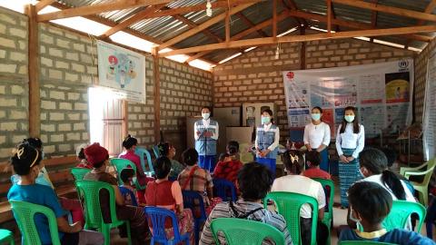 ရှမ်းပြည်နယ်တောင်ပိုင်း၊ ပအိုဝ်းကိုယ်ပိုင်အုပ်ချုပ်ခွင့်ရဒေသ၊ နောင်တရားမြို့၌ အသက်(၁၈)နှစ်အထက်ပြည်သူများ ကိုဗစ်-၁၉ ရောဂါ ကာကွယ်ဆေး ရာနှုန်းပြည့်ထိုးနှံနိုင်ရေးအတွက် ကျန်းမာရေးဝန်ထမ်းများနှင့် ဌာနဆိုင်ရာဝန်ထမ်းများက ကာကွယ်ဆေး မထိုးရသေးသည့် ပြည်သူများကို နောင်တရားမြို့မဈေး အဝင်ပေါက်တွင် ကာကွယ်ဆေး ထိုးနှံပေးလျက်ရှိသည်။