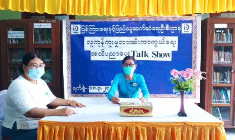 ဧရာဝတီတိုင်းဒေသကြီး၊ဖျာပုံခရိုင်၊ပြန်ကြားရေးနှင့်ပြည်သူ့ဆက်ဆံရေးဦးစီးဌာန၊လူထုအခြေပြုဗဟိုဌာန (Community Centre) ခန်းမတွင် မြို့နယ်စာအုပ်စာစောင် ချစ်မြတ်နိုးသူများအသင်း (Book Club)နှင့် ပူးပေါင်း၍ စာပေကို ချစ်မြတ်နိုးတန်ဖိုးထားသူများ တိုးပွားလာစေရန် ရည်ရွယ်၍ စာဖတ်ဝိုင်းကို ယနေ့ နံနက် (၉)နာရီခွဲအချိန်ခန့်က ခရိုင်ပြန်ကြားရေးနှင့်ပြည်သူ့ဆက်ဆံရေး ဦးစီးဌာန၊ Community Centre ခန်းမ၌ ပြုလုပ်သည်။