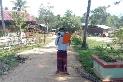ကရင်ပြည်နယ်၊ မြဝတီခရိုင်၊ စုကလိမြို့တွင်ကိုဗစ်-၁၉ ရောဂါ အပါအဝင် အိုမီခရွန်ကူး စက်မြန်ရောဂါ ကြိုတင်ကာကွယ်ရေး အသိပေးနှိုးဆော်ချက် များကို ပြည်သူများ သိရှိစေရန် စဉ်ဆက်မပြတ်ဆောင်ရွက်ပေးလျက်ရှိရာယနေ့နံနက် ၉ နာရီက ရပ်ကွက်များအတွင်း ပြန်ကြား ရေးနှင့်ပြည်သူ့ဆက်ဆံရေး ဦးစီးဌာနမှ ဝန်ထမ်းများက လက်ကိုင်အသချဲ့စက်ဖြင့် လိုက်လံနှိုး ဆော်ပေးသည်။