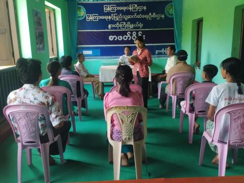 ရန်ကုန်တိုင်းဒေသကြီး၊ ကျောက်တံတားခရိုင်၊ ကျောက်တံတားမြို့နယ် ပြန်ကြားရေးနှင့်ပြည်သူ့ဆက်ဆံရေးဦးစီးဌာန၊ ပညာ့အလင်းခေတ်မီစာကြည့်တိုက် လူထုအခြေပြုဗဟိုဌာန (Community Centre) ခန်းမ၌ ယမန်နေ့ နံနက် (၁၁:၀၀)နာရီအချိန်က လေအန်ကုန်းစာပေရပ်ဝန်းမှ စာရေးဆရာများ၊ စာပေချစ်မြတ်နိုးသူများအဖွဲ့ (Book Club) တို့ပူးပေါင်း၍ စာရေးသားနည်းသင်တန်းဆင်းပွဲအခမ်းအနားကို ကျင်းပပြုလုပ်ရာ ပြန်ကြားရေးနှင့်ပြည်သူ့ဆက်ဆံရေးဦးစီးဌာနမှ တာဝန်ရှိသူများနှင့် မြို့မိမြို့ဖ ဦးသိန်းနိုင်၊ လေအန်ကုန်းစာပေရပ်ဝန်းမှ တာဝန်ရှိသူများစာရေးဆရာများ၊ သင်တန်းနည်းပြဆရာစာရေးဆရာ သိင်္ခသူနှင့် စာရေးဆရာ နောင်အံ့လူ၊ သင်တန်းသား/သင်တန်းသူများ ဖိတ်ကြားထားသူများ တက်ရောက်ကြသည်၊၊