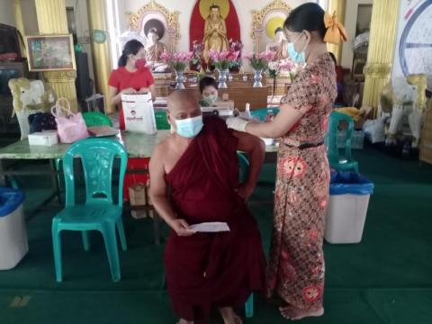 ရန်ကုန်တိုင်းဒေသကြီး၊ ရန်ကုန်အနောက်ပိုင်းခရိုင်၊ လှိုင်မြို့နယ်၌ကိုဗစ်-၁၉ရောဂါ ကာကွယ် ထိန်းချုပ်နိုင်ရန်အတွက် အသက်(၁၈)နှစ်နှင့်အထက် ပြည်သူများအားလှိုင်မြို့နယ်၊ အမှတ် ၁၂ ရပ်ကွက်၊ ယောဂီကျောင်းလမ်း၊ သိပ္ပံပစ္စည်း စက်ရုံ၀န်းရှိ ကိုဗစ်-၁၉ ကုသရေးစင်တာတွင် ကိုဗစ်-၁၉ ရောဂါကာကွယ်ဆေးဆက်လက်ထိုးနှံ ပေးလျက်ရှိရာ ယမန်နေ့ နံနက် ၉ နာရီအချိန် တွင် ရပ်ကွက် ( ၁၆) ရပ်ကွက်ရှိအသက်(၁၈)နှစ်နှင့်အထက် ပြည်သူများအားကိုဗစ်-၁၉ရောဂါ ကာကွယ်ဆေး(Covidshield)ထိုးနှံသူ ပထမအကြိမ် စုစုပေါင်း (၁၂၁)ဦးနှင့် ဒုတိယအကြိမ် စုစုပေါင်း(၁၉၉)ဦးအား ထိုးနှံပေးခဲ့ကြောင်း သိရသည်။ လှိုင်မြို့နယ် ကိုဗစ်-၁၉ ရောဂါထိန်းချုပ်ရေးနှင့်အရေးပေါ်တုံ့ပြန်ရေးလုပ်ငန်းကော်မတီ၏ ကြီးကြပ်မှုဖြင့်လှိုင်မြို့နယ်စီမံအုပ်ချုပ်ရေး ဥက္ကဋ္ဌ ဦးဟန်ဝင်းလတ်နှင့်ဝန်ထမ်းများ၊ သက်ဆိုင်ရာ ရပ်ကွက်အုပ်ချုပ်ရေးမှူးများ၊ စာရေးဝန်ထမ်းများ၊ ရဲတပ်ဖွဲ့ဝင်များ၊ မီးသတ် တပ်ဖွဲ့ဝင်များနှင့်ကြက်ခြေနီတပ်ဖွဲ့ဝင်များက ကာကွယ်ဆေးထိုးနှံရန် လာရောက်ကြသော အသက်(၁၈)နှစ် နှင့်အထက်ပြည်သူများ လူစုလူဝေးမဖြစ်ပေါ်စေရေး၊ သွားလာရေး အဆင်ပြေစေရန် ကျန်းမာရေးဝန်ကြီးဌာနမှ ထုတ်ပြန်ထားသော စည်းကမ်းချက်များနှင့်အညီဆောင်ရွက်လျက်ရှိကြောင်း သိရသည်။