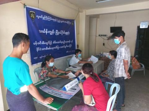 ရန်ကုန်တိုင်းဒေသကြီး၊ အရှေ့ပိုင်းခရိုင်၊ သင်္ဃန်းကျွန်းမြို့နယ်တွင် လူဝင်မှုကြီးကြပ်ရေးနှင့် ပြည်သူ့အင်အားဝန်ကြီးဌာန၊ မြို့နယ်ဦးစီးမှူးရုံးမှ မြို့နယ်အတွင်းရှိ ဒေသခံပြည်သူများအား လူနေမှုဘဝပြည့်စုံဖို့ နိုင်ငံသားကတ်ကိုင်ကြစို့ ပန်းခင်း စီမံချက်ဖြင့် နိုင်ငံသားစိစစ်ရေးကတ် မရရှိသေးသည့် ပြည်သူများနှင့် အိမ်ထောင်စုလူဦးရေစာရင်း ပြုလုပ်လိုသူများအား ရပ်ကွက်များအရောက် ကွင်းဆင်းပြုလုပ် ဆောင်ရွက်ပေးလျက်ရှိရာ ယမန်နေ့၊ နံနက် (၈)နာရီမှ ညနေ (၃) နာရီအထိ နနွင်းကုန်းရပ်ကွက် အုပ်ချုပ်ရေးမှူးရုံး၌ ဆောင်ရွက်ပေးလျက်ရှိကြောင်း သိရသည်။