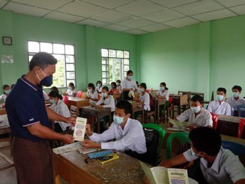 “အနာဂတ်ပန်းများပွင့်လန်းဖို့ မူးယစ်အန္တရာယ်ကာကွယ်စို့” ဆောင်ပုဒ်နှင့်အညီ ကျောင်းသား၊ ကျောင်းသူ ကလေးငယ်များအား မူးယစ်ဆေးဝါး၏ ဆိုးကျိုးအန္တရာယ်များအကြောင်းကို သိရှိနား လည်စေရန်နှင့် မူးယစ်ဆေးဝါးကို အသုံးမပြုမိအောင် သတိပြုရှောင်ကြဉ်ကြ နိုင်စေရန်အတွက် အပြည်ပြည်ဆိုင်ရာ မူးယစ်ဆေးဝါးအလွဲသုံးမှုနှင့် တရားမဝင် ရောင်းဝယ်မှုတိုက်ဖျက်ရေးနေ့ အထိမ်းအမှတ်အဖြစ် ထုတ်ဝေ ထားသည့် သတင်းစကား လက်ကမ်းစာစောင်များအား ယနေ့ နံနက်ပိုင်းက ရန်ကုန်မြောက်ပိုင်းခရိုင်၊ ထန်းတပင်မြို့နယ် ပြန်ကြားရေးနှင့် ပြည်သူ့ဆက်ဆံရေးဦးစီးဌာနမှ ဝန်ထမ်းများက အမှတ်(၁)ရပ်ကွက် အခြေခံပညာမူလတန်း ကျောင်းသို့ သွားရောက်ကာ ဖြန့်ဝေပေးခဲ့ကြကြောင်း သိရသည်။