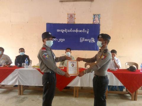 ဧရာဝတီတိုင်းဒေသကြီး၊ မအူပင်ခရိုင်၊ ဓနုဖြူမြို့နယ်တွင် ၂၀၂၀ပြည့်နှစ် ပါတီစုံဒီမိုကရေစီအထွေထွေ ရွေးကောက်ပွဲ အောင်မြင်စွာ ကျင်းပနိုင်ရေး မဲရုံအသီးသီး၌ မဲရုံလုံခြုံရေးအတွက် အထူးရဲများ တာဝန်ပေးနိုင်ရန် အထူးရဲသင်တန်းအား ဖွင့်လှစ်ခဲ့ရာ အဆိုပါ သင်တန်းဆင်းပွဲကို ယနေ့ နံနက် ၇ နာရီ အချိန်တွင် တော်ပေါ်ဘုန်းကြီးကျောင်း ရာပြည့်ဗိမ္မာန်၌ ကျင်းပခဲ့သည်။