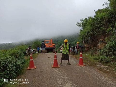 မန်ကန်မြို့၌ မိုးအဆက်မပျက်သည်းထန်စွာရွာသွန်းမှုကြောင့် မန်ကန်၊ ပန်ဆန်း(ပန်ခမ်း) လမ်းမကြီးပေါ်သို့ ကျောက်တုံးပြိုကျမှုဖြစ်ပွား