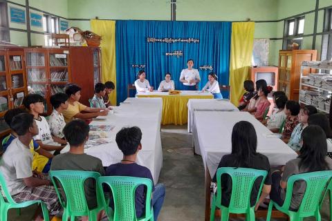 ကရင်ပြည်နယ်၊ ဘားအံမြို့နယ်တွင် အနာဂတ်လူငယ်များ ကာယ၊ ဉာဏ၊ စာရိတ္တ၊ မိတ္တ၊ ဘောဂဗလ ငါးတန်ဖွံ့ဖြိုးစေရေးနှင့် စကားဝိုင်းများတွင် ပါဝင်ဆွေးနွေးသည့် အလေ့အကျင့်ကောင်းများ ရရှိစေရေးအတွက် ပြန်ကြားရေးနှင့်ပြည်သူ့ဆက်ဆံရေးဦးစီးဌာနနှင့် အခြေခံပညာဦးစီးဌာန၊ ကရင်ပြည်နယ် စာကြည့်တိုက်များ ဖောင်ဒေးရှင်းတို့ ပူးပေါင်းကျင်းပသည့် လူငယ်စကားဝိုင်းဆွေးနွေးပွဲကို ယမန်နေ့မွန်းလွဲ ၁:၃၀ နာရီခန့်က ဘားအံမြို့နယ်၊ YuRi ကိုယ်ပိုင်အထက်တန်းကျောင်းခန်းမ၌ ကျင်းပပြုလုပ်ရာ ကျောင်းအုပ်ဆရာမကြီးနှင့် ဆရာ/ဆရာမများ၊ ကရင်ပြည်နယ် စာကြည့်တိုက်များ ဖောင်ဒေးရှင်းဥက္ကဋ္ဌနှင့် အဖွဲ့ဝင်များ၊ ကျောင်းသား/ကျောင်းသူများ စုစုပေါင်း (၁၂၅)ဦးခန့် တက်ရောက်ခဲ့ကြကြောင်း သိရှိရသည်။