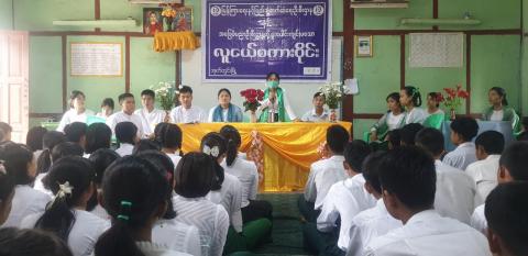 ရန်ကုန်တိုင်းဒေသကြီး၊ အင်းစိန်ခရိုင်၊ လှိုင်သာယာ(အနောက်ပိုင်း)မြို့နယ်၊ အမှတ် (၁၇) ရပ်ကွက်၊ အ.ထ.က (၃) တွင် လူငယ်များ ဘက်စုံဖွံ့ဖြိုးတိုးတက်စေရန်၊ နိုင်ငံတော်အတွက် ထူးချွန်ထက်မြက်သည့် အနာဂတ်လူငယ်များ ပေါ်ထွန်းလာစေရန်ရည်ရွယ်၍ ပြန်ကြားရေးနှင့်ပြည်သူ့ဆက်ဆံရေးဦးစီးဌာနနှင့် အခြေခံပညာဦးစီးဌာနတို့ ပူးပေါင်းကျင်းပသော ဟောပြောပွဲနှင့် နံရံကပ်စာစောင်ပြပွဲကို ယနေ့ နံနက် (၉) နာရီ က အ.ထ.က (၃) နတ်သျှင်နောင်ခန်းမတွင် ပြုလုပ်သည်။