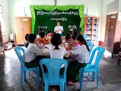 ဧရာဝတီတိုင်းဒေသကြီး၊ မြန်အောင်ခရိုင်၊ ကြံခင်းမြို့နယ် ပြန်ကြားရေးနှင့်ပြည်သူ့ဆက်ဆံရေးဦးစီးဌာန လူထုအခြေပြုဗဟိုဌာန(Community Centre) ခန်းမတွင် ယမန်နေ့ နေ့လယ်ပိုင်းက စာပေချစ်မြတ်နိုးသူ Book Club အဖွဲ့နှင့် Woman Club အဖွဲ့များ ပူးပေါင်းပြီး စာရေးဆရာချစ်နိုင်(စိတ်ပညာ)ရေးသားသော ‟ခေါင်းဆောင်မှုအတွေး၏ အရေးပါမှု” စာအုပ်ဖြင့် စာဖတ်ဝိုင်းပြုလုပ်ကြသည်။
