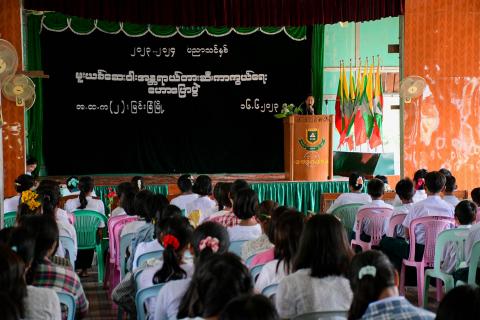 ရှမ်းပြည်နယ်(တောင်ပိုင်း)၊ လွိုင်လင်ခရိုင်၊ ပင်လုံမြို့ ပြန်ကြားရေးနှင့်ပြည်သူ့ဆက်ဆံရေးဦးစီးဌာနနှင့် ပညာရေးဌာနတို့ ပူးပေါင်း၍ ကျောင်းသား/ကျောင်းသူများ အသိပညာတိုးပွားရန် စာဖတ်သည့် အလေ့အကျင့်ကောင်းများ ရရှိစေရန် ရည်ရွယ်၍ ယနေ့ နံနက် ၁၀ နာရီခွဲအချိန်က အ.မ.က-ဝမ်မိုင်ကျောင်းသို့ သွားရောက်ပြီး အသိပညာပေးဟောပြောပွဲနှင့် စာဖတ်ရှိန်မြှင့်တင်ရေး နယ်လှည့်စာကြည့်တိုက်လုပ်ငန်းကို ကွင်းဆင်းဆောင်ရွက်ခဲ့ပါသည်။