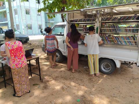 ပြန်ကြားရေးနှင့်ပြည်သူ့ဆက်ဆံရေးဦးစီးဌာန တောင်ငူခရိုင်ရုံးက ပြည်သူများစာဖတ်သည့် အလေ့အထများရှိလာစေရန်၊ စာပေကိုလက်လှမ်းမီစွာ ဖတ်ရှု့လေ့လာနိုင်စေရန်၊ စာပေဖတ်ရှုလေ့လာခြင်းဖြင့် အသိပညာဗဟုသုတများ ကြွယ်ဝလာပြီး အမှန်နှင့်အမှားကို ဝေဖန်ပိုင်းခြားတတ်စေရန်၊ လူငယ်လူရွယ်များ အချိန်ကိုအကျိုးရှိစွာ အသုံးချတတ်စေရန် ရည်ရွယ်၍ ရွေ့လျားစာကြည့်တိုက်မော်တော်ယာဥ်ဖြင့် စာအုပ်စာစောင်များကို ပြည်သူများ လက်ဝယ်အရောက် သွားရောက်ငှားရမ်းဆောင်ရွက်ပေးလျက်ရှိရာ ယနေ့နံနက်ပိုင်းက တောင်ငူခရိုင်အိုးအိမ်ဦးစီးဌာန၊ ပြည်တော်သာဝန်ထမ်းအိမ်ရာနှင့် ခရိုင်ပညာရေးမှူးရုံး၊ မြို့နယ်ပညာရေးမှူးရုံးသို့ သွားရောက်ငှားရမ်းဆောင်ရွက်ပေးခဲ့ကြောင်း သိရသည်။