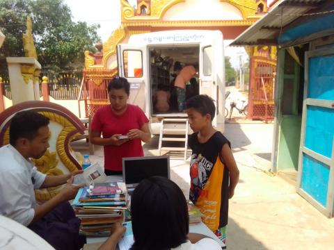 ကရင်ပြည်နယ်၊ သံတောင်ကြီးမြို့နယ်၊ လိပ်သိုမြို့တွင် ပြန်ကြာရေးနှင့်ပြည်သူ့ဆက်ဆံရေးဦးစီးဌာနက ပြည်သူများစာပေလေ့လာဖတ်ရှုသည့် အလေ့အကျင့်ကောင်းများ ရရှိရေး၊ စာပေမှ ရရှိ သည့်ဗဟုသုတများ တိုးပွားစေရေး၊ အလုပ်တာဝန်များကြောင့် စာကြည့်တိုက်သို့ စာအုပ်စာစောင်များ လာရောက်မငှားရမ်းနိုင်သော ဒေသနေပြည်သူများနှင့် ဝန်ထမ်းများအား Mobile စနစ်ဖြင့် စာအုပ်စောင်များ ငှားရမ်းပေးခြင်းကို ယနေ့ နံနက် ၁၁ နာရီအချိန်က အမှတ်(၄) ရပ်ကွက်သို့ သွားရောက်ငှါးရမ်းပေးခဲ့ကြောင်း သိရသည်။