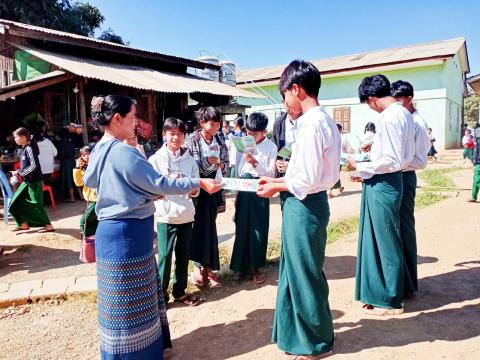 ရှမ်းပြည်နယ်(တောင်ပိုင်း)၊ လွိုင်လင်ခရိုင်၊ ပင်လုံမြို့၌ ၂၀၂၅ ခုနှစ်၊ ဖေဖော်ဝါရီလ (၁၂) ရက်နေ့တွင် ကျရောက်မည့် (၇၈) နှစ်မြောက် ပြည်ထောင်စုနေ့အထိမ်းအမှတ် ပြန်ကြားရေးနှင့်ပြည်သူ့ဆက်ဆံရေးဦးစီးဌာန ရုံးချုပ်မှထုတ်ဝေသည့် သတင်းစကားလက်ကမ်းစာစောင်များကို ပြန်ကြားရေးနှင့်ပြည်သူ့ဆက်ဆံရေးဦးစီးဌာနမှ ဒုတိယဦးစီးမှူးနှင့် ဝန်ထမ်းများက ယနေ့နံနက် ၈ နာရီခွဲအချိန်က အခြေခံပညာကျောင်းများသို့ သွားရောက်၍ ကျောင်းသား၊ ကျောင်းသူများလက်ဝယ်အရောက် ဖြန့်ဝေခဲ့ကြောင်း သိရသည်။