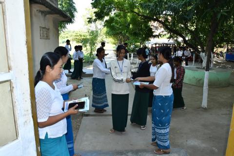 မန္တလေးတိုင်းဒေသကြီး၊ ကျောက်ဆည်ခရိုင်၊ ကျောက်ဆည်မြို့တွင် ကျောင်းသား/ ကျောင်းသူများ အမျိုးသားရေးစိတ်ဓာတ်ခိုက်မာရေး အမျိုးသားအောင်ပွဲနေ့ အသိပညာပေး လက်ကမ်းစာစောင်များ ဖြန့်ဝေလျက်ရှိရာ ယနေ့နံနက် (၁၀) နာရီက အမှတ် (၁) အခြေခံပညာအထက်တန်းကျောင်းတွင် (၁၀၄)နှစ်မြောက် အမျိုးသားအောင်ပွဲနေ့အထိမ်းအမှတ် သတင်းစကားလက်ကမ်းများ ဖြန့်ဝေပေးခဲ့ကြောင်း သိရသည်။