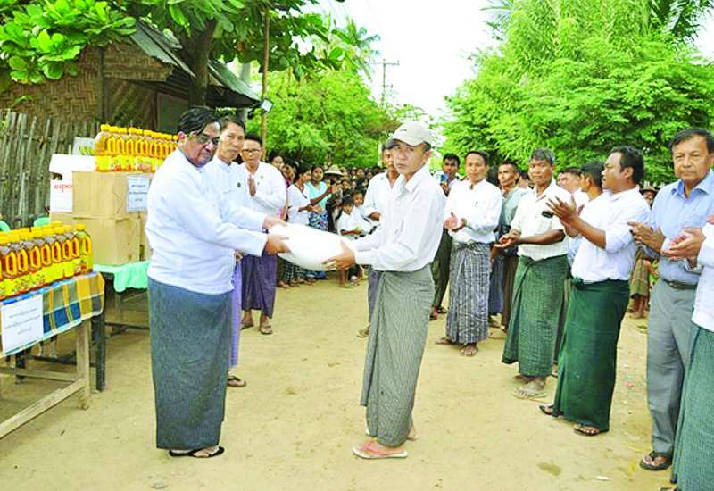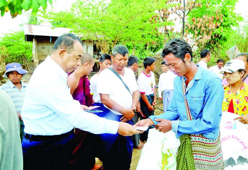 ရေဘေးဒဏ်သင့်ခဲ့ရသည့် နေပြည်တော်ဇေယျာသီရိမြို့နယ် ချောင်းကမ်းကြီးကျေးရွာမှ အိမ်ထောင်စု ၂၆၀ အတွက် ထောက်ပံ့ငွေနှင့် ဆန်၊ ဆီ၊ ဆား၊ ကြက်သွန် စသည့်ပစ္စည်းများ ထောက်ပံ့လှူဒါန်းခြင်း အခမ်းအနားကို ယနေ့နံနက်ပိုင်းတွင် ချောင်းကမ်းကြီးကျေးရွာ ဘုန်းတော်ကြီးကျောင်း၌ကျင်းပရာ အလုပ်သမားဝန်ကြီးဌာန ပြည်ထောင်စုဝန်ကြီး ဦးမြင့်နောင်၊ ဒုတိယဝန်ကြီး ဦးဝင်းရှိန်၊ ညွှန်ကြားရေးမှူးချုပ်များနှင့် တာဝန်ရှိသူများ၊ ဦးစီးဌာန၊ အဖွဲ့ရုံးတို့မှ ဝန်ထမ်းများနှင့် မြန်မာပြည်ပ အလုပ်အကိုင်ဝန်ဆောင်မှုလုပ်ငန်းရှင်များအသင်း (MOEAA) တို့မှ တာဝန်ရှိသူများ တက်ရောက်ကြသည်။