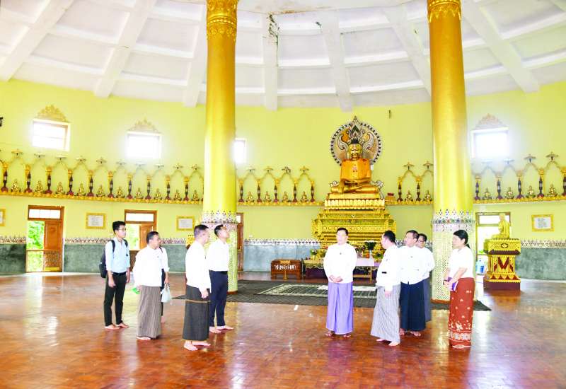 သာသနာရေးနှင့်ယဉ်ကျေးမှုဝန်ကြီးဌာန ဒုတိယဝန်ကြီး ဦးအေးထွန်းသည် တာဝန်ရှိသူများနှင့်အတူ ယနေ့နံနက်ပိုင်းက ရန်ကုန်တိုင်းဒေသကြီး ဗဟန်းမြို့နယ် ရွှေတောင်ကြား ၂ ရပ်ကွက် အင်းယားမြိုင်လမ်း အလယ်တောရစံပြစာသင်တိုက်အတွင်းရှိ တက်လမ်းဆောက်လုပ်ရေးကုမ္ပဏီမှ တာဝန်ယူဆောင်ရွက်သော နိုင်ငံတော်သံဃမဟာနာယကအဖွဲ့ပိုင်အဖြစ် ဗုဒ္ဓဘာသာဝင် ခုနစ်ရက်သားသမီးများ စုပေါင်းလှူဒါန်းထားသည့် ဓမ္မဝိဇယသာသနာ့ဗိမာန်တော်ကြီး RC လေးထပ်အဆောက်အအုံ ဆောက်လုပ်ပြီးစီးမှုကို ကြည့်ရှုစစ်ဆေးသည်။
