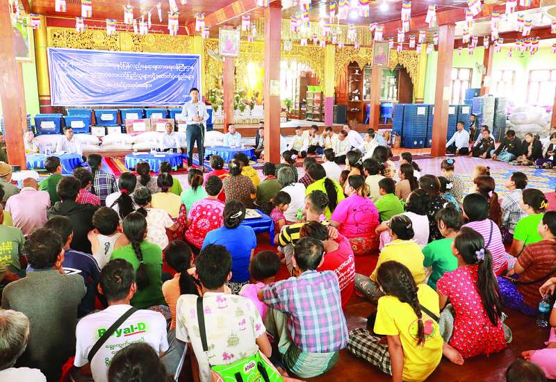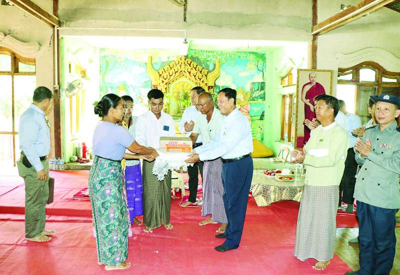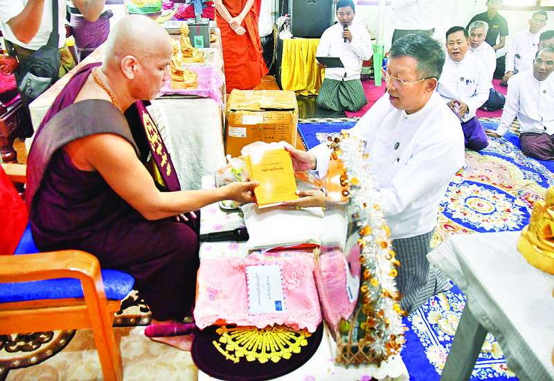 နေပြည်တော်ကောင်စီနယ်မြေ ဇေယျာသီရိမြို့နယ် ရတနာစံကျောင်းတိုက်၌ ရေဘေးရှောင်နေသော ဘုန်းတော်ကြီးကျောင်းများ၊ ဘုန်းတော်ကြီးသင်ပညာရေးကျောင်းနှင့် သီလရှင်ကျောင်းများမှ ဆရာတော် သံဃာတော်များနှင့် သီလရှင်များအား သင်္ကန်းနှင့်လှူဖွယ်ဝတ္ထုများ ဆက်ကပ်လှူဒါန်းခြင်းအခမ်းအနားကို ယနေ့နံနက် ၈ နာရီက ရတနာစံပရိယတ္တိစာသင်တိုက် ရတနာဘိမတဓမ္မဗိမာန်တော်၌ ကျင်းပပြုလုပ်ရာ သာသနာရေးနှင့်ယဉ်ကျေးမှုဝန်ကြီးဌာန ပြည်ထောင်စုဝန်ကြီး ဦးတင်ဦးလွင်၊ ဒုတိယဝန်ကြီးများ၊ အမြဲတမ်းအတွင်းဝန်၊ ညွှန်ကြားရေးမှူးချုပ်များနှင့် တာဝန်ရှိသူများ တက်ရောက်ကြသည်။