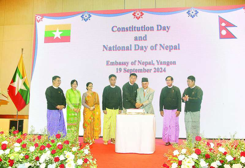 နီပေါနိုင်ငံ၏ အခြေခံဥပဒေရေးဆွဲခြင်း (၁၀)နှစ်မြောက်အထိမ်းအမှတ်နေ့နှင့် အမျိုးသားနေ့အထိမ်းအမှတ်ဧည့်ခံပွဲအခမ်းအနားကို ယနေ့ ည ၆ နာရီခွဲတွင် ရန်ကုန်မြို့ Pan Pacific Hotel ၌ ကျင်းပရာ ဒုတိယဝန်ကြီးချုပ်နှင့် ပို့ဆောင်ရေးနှင့်ဆက်သွယ်ရေးဝန်ကြီးဌာန ပြည်ထောင်စုဝန်ကြီး ဗိုလ်ချုပ်ကြီး မြထွန်းဦး တက်ရောက်သည်။
