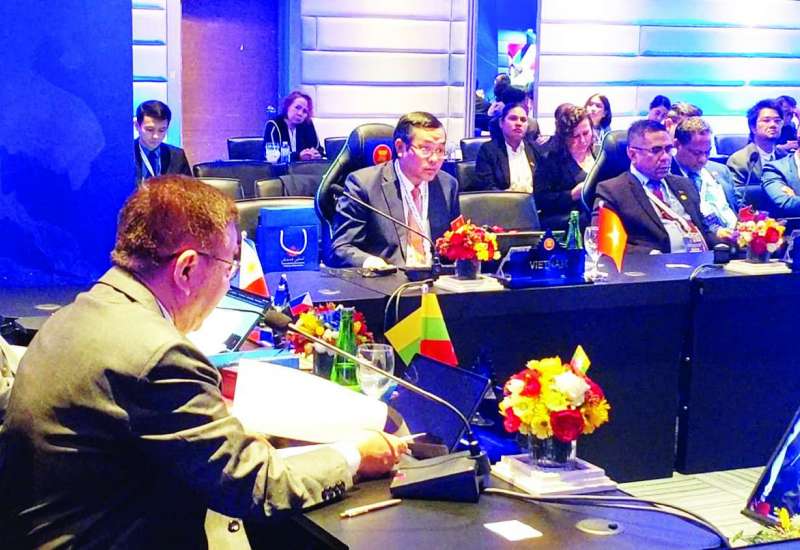 ထိုင်းနိုင်ငံမှ အိမ်ရှင်အဖြစ်ကျင်းပသည့် (၁၃) ကြိမ်မြောက် အာဆီယံပညာရေးဝန်ကြီးများ အစည်းအဝေးတက်ရောက်မည့် ပြည်ထောင်စုဝန်ကြီး ဒေါက်တာညွန့်ဖေ ဦးဆောင်သော မြန်မာကိုယ်စားလှယ်အဖွဲ့သည် ယမန်နေ့ညနေပိုင်းတွင် ခေတ္တတည်းခိုသည့် ထိုင်းနိုင်ငံ ဘူရီယမ်မြို့ရှိ Modena ဟိုတယ်မှတစ်ဆင့် အာဆီယံအဖွဲ့ဝင်နိုင်ငံများမှ ပညာရေးဝန်ကြီးများနှင့် ကိုယ်စားလှယ်များ၊ ဧည့်သည်တော်များနှင့်အတူ ဘူရီယမ်မြို့ရှိ Khao Phnom Rung ရှေးဟောင်းဒေသနှင့် Prasat Meaung Tam ရှေးဟောင်းဒေသသို့ သွားရောက်လေ့လာပြီး ထိုင်းနိုင်ငံပညာရေးဝန်ကြီးက တည်ခင်းဧည့်ခံသည့် ဂုဏ်ပြုညစာစားပွဲသို့ တက်ရောက်သည်။