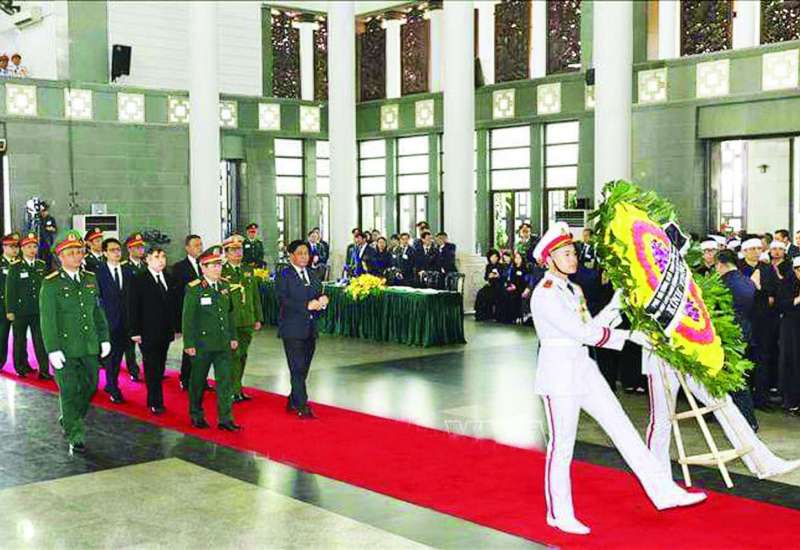 နိုင်ငံတော်စီမံအုပ်ချုပ်ရေးကောင်စီအဖွဲ့ဝင် ဒုတိယဝန်ကြီးချုပ်နှင့် ကာကွယ်ရေးဝန်ကြီးဌာန ပြည်ထောင်စုဝန်ကြီး ဗိုလ်ချုပ်ကြီးတင်အောင်စန်း ဦးဆောင်သော ကိုယ်စားလှယ်အဖွဲ့သည် ဗီယက်နမ်ကွန်မြူနစ်ပါတီ အထွေထွေအတွင်းရေးမှူးနှင့် သမ္မတဟောင်း ငုယင်ဖုကျောက်၏ နိုင်ငံတော်ဈာပနအခမ်းအနားသို့ တက်ရောက်ခဲ့ပြီး ယမန်နေ့ညပိုင်းတွင် ရန်ကုန်မြို့သို့ လေကြောင်းခရီးဖြင့် ပြန်လည်ရောက်ရှိရာ ရန်ကုန်တိုင်းဒေသကြီးဝန်ကြီးချုပ်၊ ရန်ကုန်တိုင်းစစ်ဌာနချုပ်တိုင်းမှူး၊ မြန်မာနိုင်ငံဆိုင်ရာ ဗီယက်နမ်ဆိုရှယ်လစ်သမ္မတနိုင်ငံ စစ်သံမှူးနှင့် သံရုံးမှတာဝန်ရှိသူများ၊ တပ်မတော်အရာရှိကြီးများက ရန်ကုန်အပြည်ပြည်ဆိုင်ရာလေဆိပ်၌ ကြိုဆိုနှုတ်ဆက်ကြသည်။