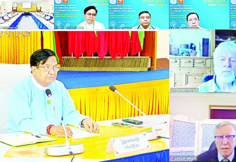 အင်ဂျင်နီယာပညာရေးနှင့် နည်းပညာဆိုင်ရာ စဉ်ဆက်မပြတ်တိုးတက်နိုင်စေရေး ရည်ရွယ်ကျင်းပသည့် နိုင်ငံတကာအင်ဂျင်နီယာပညာရေး အသိအမှတ်ပြုမှုကွန်ဖရင့် ၂၀၂၄ (International Conference on Engineering Education Accreditation 2024 - ICEEA 2024) အခမ်းအနားကို ယနေ့ မွန်းလွဲပိုင်းတွင် Video Conferencing ဖြင့် ကျင်းပရာ မြန်မာနိုင်ငံအင်ဂျင်နီယာကောင်စီနာယက၊ စက်မှုဝန်ကြီးဌာန ပြည်ထောင်စုဝန်ကြီး ဒေါက်တာချာလီသန်းက နေပြည်တော်ရှိ စက်မှုဝန်ကြီးဌာန ရုံးအမှတ် (၃၀) အစည်းအဝေးခန်းမမှ တက်ရောက်သည်။