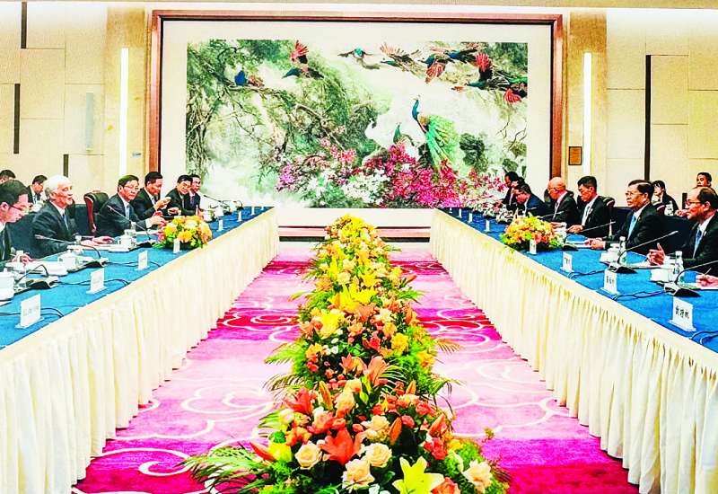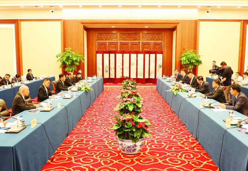 ဒုတိယဝန်ကြီးချုပ်နှင့် နိုင်ငံခြားရေးဝန်ကြီးဌာန ပြည်ထောင်စုဝန်ကြီး ဦးသန်းဆွေနှင့် စီးပွားရေးနှင့် ကူးသန်းရောင်းဝယ်ရေးဝန်ကြီးဌာန ပြည်ထောင်စုဝန်ကြီး ဦးထွန်းအုံတို့ ဦးဆောင်သည့် မြန်မာကိုယ်စားလှယ်အဖွဲ့သည် တရုတ်ပြည်သူ့သမ္မတနိုင်ငံ ကူမင်းမြို့သို့ ရောက်ရှိစဉ် ဇူလိုင် ၂၃ ရက် ဒေသစံတော်ချိန် နံနက် ၁၁ နာရီက တျန်းချီ (Dianchi) အပြည်ပြည်ဆိုင်ရာကွန်ဗင်းရှင်းနှင့် ပြပွဲစင်တာရှိ အစည်းအဝေးခန်းမ၌ တရုတ်ပြည်သူ့သမ္မတနိုင်ငံ (၁၄) ကြိမ်မြောက် အမျိုးသားပြည်သူ့ ကွန်ဂရက်အမြဲတမ်းကော်မတီ ဒုတိယဥက္ကဋ္ဌ မစ္စတာ တင်းကျုံ့လီ ဦးဆောင်သည့် တရုတ်ကိုယ်စားလှယ်အဖွဲ့နှင့် နှစ်နိုင်ငံတွေ့ဆုံဆွေးနွေးမှု ပြုလုပ်ခဲ့သည်။