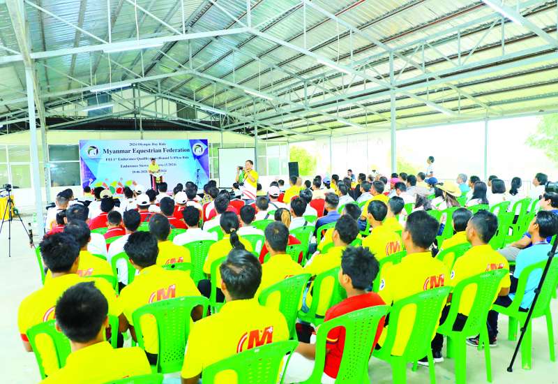 ၂၀၂၄ ခုနှစ် အပြည်ပြည်ဆိုင်ရာ အိုလံပစ်နေ့အထိမ်းအမှတ် မြန်မာနိုင်ငံ မြင်းစီးအားကစားအဖွဲ့ချုပ်၏ FEI (1 Star) Endurance Qualification Round (3) ခရီးရှည် မြင်းစီးအားကစား အရည် အချင်းစစ်ပြိုင်ပွဲနှင့် Endurance Steward သင်တန်းဖွင့်ပွဲ အခမ်း အနားကို ယနေ့နံနက် ၉ နာရီတွင် နေပြည်တော် ဥတ္တရသီရိမြို့နယ် မြင်းစီးအားကစားကွင်း၌ ကျင်းပသည်။