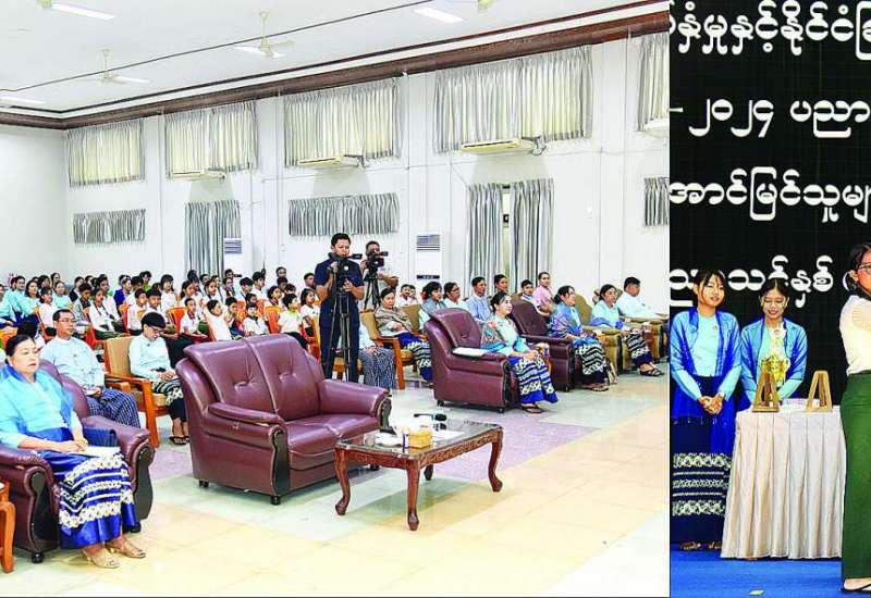ရင်းနှီးမြှုပ်နှံမှုနှင့် နိုင်ငံခြားစီးပွားဆက်သွယ်ရေးဝန်ကြီးဌာန ဝန်ထမ်းသားသမီးများ၏ ၂၀၂၃-၂၀၂၄ ပညာသင်နှစ် တက္ကသိုလ်ဝင်တန်းစာမေးပွဲ ဖြေဆိုအောင်မြင်သူများ ဆုပေးအပ်ချီးမြှင့်ခြင်းနှင့် ၂၀၂၄-၂၀၂၅ ပညာသင်နှစ် ပညာသင်ထောက်ပံ့ကြေးပေးအပ်ပွဲအခမ်းအနားကို ယနေ့နံနက်ပိုင်းက ရင်းနှီးမြှုပ်နှံမှုနှင့် နိုင်ငံခြားစီးပွားဆက်သွယ်ရေးဝန်ကြီးဌာန ရုံးအမှတ် (၁) ၌ ကျင်းပသည်။