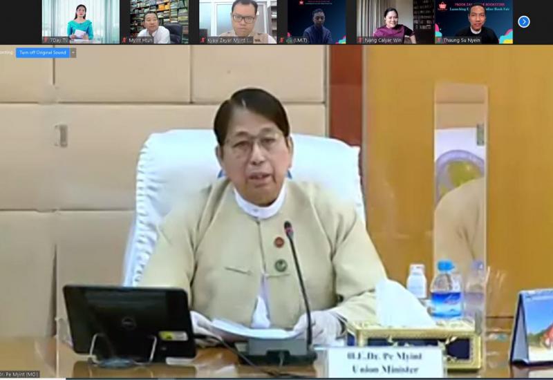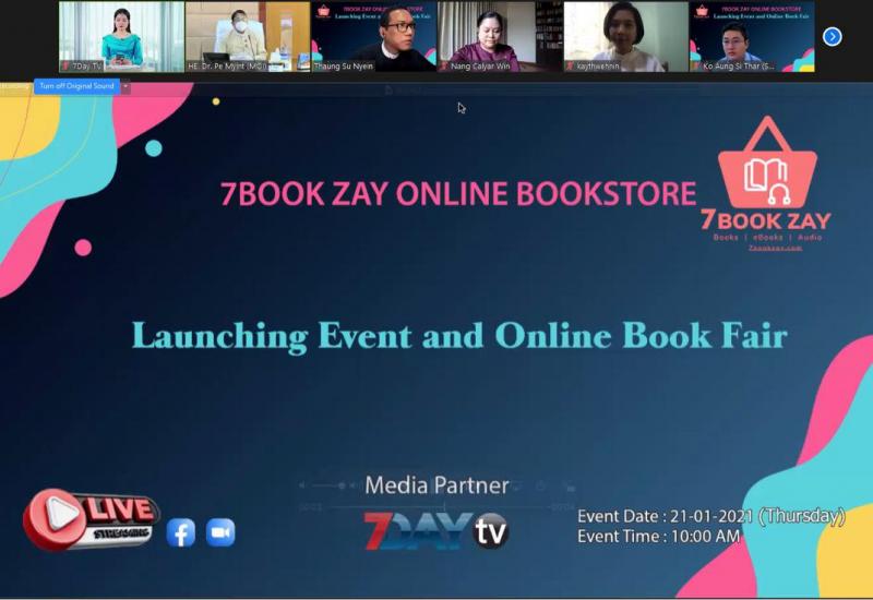 စာပေထုတ်ဝေဖြန့်ချိရေးကဏ္ဍအား ဒီဂျစ်တယ်စီးပွားရေး လုပ်ငန်းသစ်တစ်ခုအဖြစ် ပိုမိုတိုးတက်အောင်မြင်စေရေးနှင့် ပံ့ပိုးကူညီပေးနိုင်ရေး အတွက် 7 Book Zay Online Bookstore (7BookZay.com) မိတ်ဆက်ပွဲ အခမ်းအနားကို ယနေ့နံနက်(၁၀)နာရီက Virtual စနစ်ဖြင့် ကျင်းပရာ ပြန်ကြားရေးဝန်ကြီးဌာန၊ ပြည်ထောင်စုဝန်ကြီး ဒေါက်တာဖေမြင့် တက်ရောက်ခဲ့သည်။