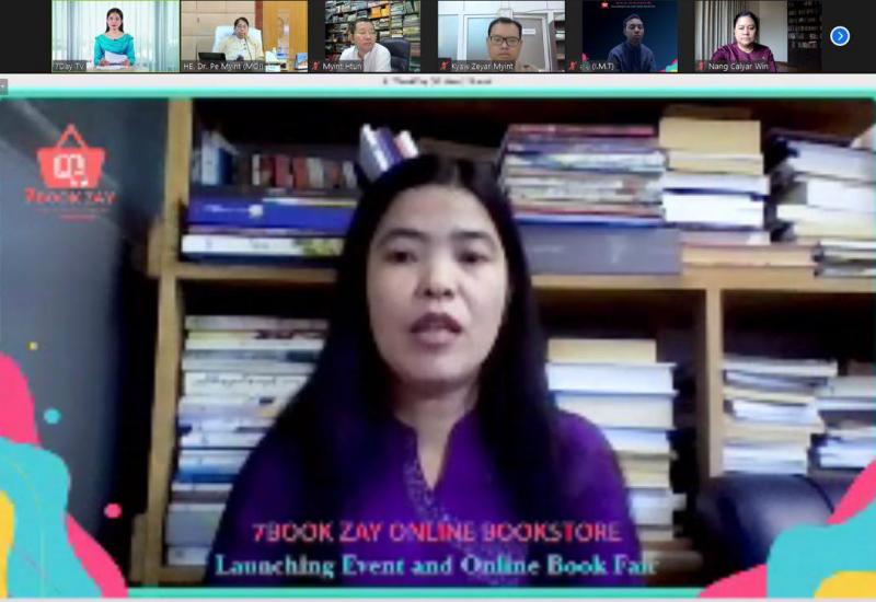 စာပေထုတ်ဝေဖြန့်ချိရေးကဏ္ဍအား ဒီဂျစ်တယ်စီးပွားရေး လုပ်ငန်းသစ်တစ်ခုအဖြစ် ပိုမိုတိုးတက်အောင်မြင်စေရေးနှင့် ပံ့ပိုးကူညီပေးနိုင်ရေး အတွက် 7 Book Zay Online Bookstore (7BookZay.com) မိတ်ဆက်ပွဲ အခမ်းအနားကို ယနေ့နံနက်(၁၀)နာရီက Virtual စနစ်ဖြင့် ကျင်းပရာ ပြန်ကြားရေးဝန်ကြီးဌာန၊ ပြည်ထောင်စုဝန်ကြီး ဒေါက်တာဖေမြင့် တက်ရောက်ခဲ့သည်။
