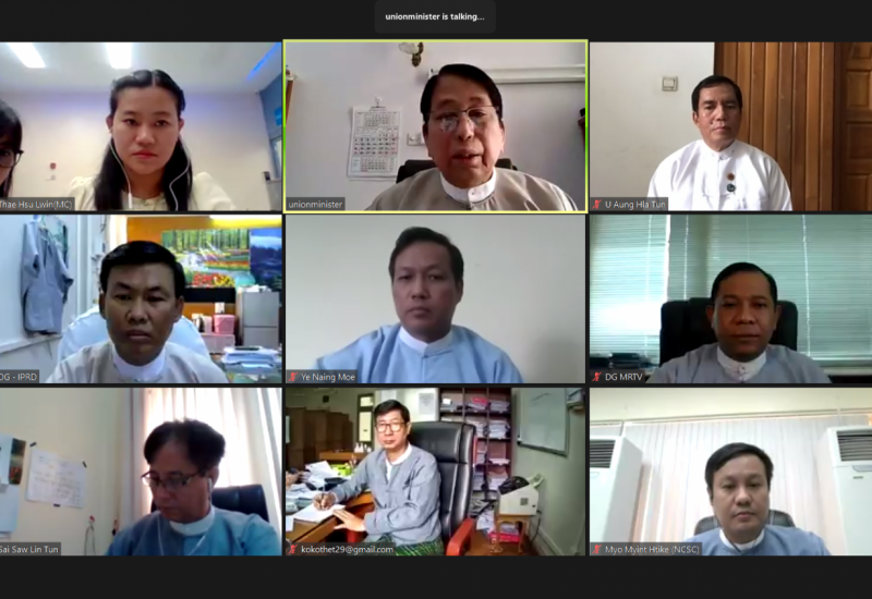 ၂၀၂၁-၂၀၂၂ ပညာသင်နှစ်အတွက် အခြေခံပညာ ကျောင်းသုံးစာအုပ်များ အရည်အသွေးပြည့်မီစွာ ပုံနှိပ်၊ ထုတ်လုပ်၊ ဖြန့်ချိနိုင်ရေးအတွက် ကျောင်းသုံးစာအုပ်များ ရိုက်နှိပ် ဖြန့်ချိရေးကော်မတီ လုပ်ငန်းညှိနှိုင်း အစည်းအဝေး(၄/၂၀၂၀) ကို ယနေ့နံနက် ၁၀ နာရီတွင် ဗီဒီယိုကွန်ဖရင့်စနစ်ဖြင့် ကျင်းပရာ ပြန်ကြားရေးဝန်ကြီးဌာန ပြည်ထောင်စုဝန်ကြီး ဒေါက်တာဖေမြင့်၊ ပညာရေးဝန်ကြီးဌာန ပြည်ထောင်စုဝန်ကြီး ဒေါက်တာ မျိုးသိမ်းကြီး၊ ပြန်ကြားရေးဝန်ကြီးဌာန ဒုတိယဝန်ကြီး ဦးအောင်လှထွန်း၊ ပညာရေးဝန်ကြီးဌာန ဒုတိယ ဝန်ကြီး ဦးဝင်းမော်ထွန်း၊ ဌာနဆိုင်ရာအကြီးအကဲများ၊ ကျောင်းသုံးစာအုပ်များ ရိုက်နှိပ် ဖြန့်ချိရေး ကော်မတီအဖွဲ့ဝင်များက သက်ဆိုင်ရာဝန်ကြီးဌာနများမှ တစ်ဆင့် ချိတ်ဆက် ပါဝင် တက်ရောက်ကြသည်။