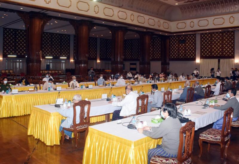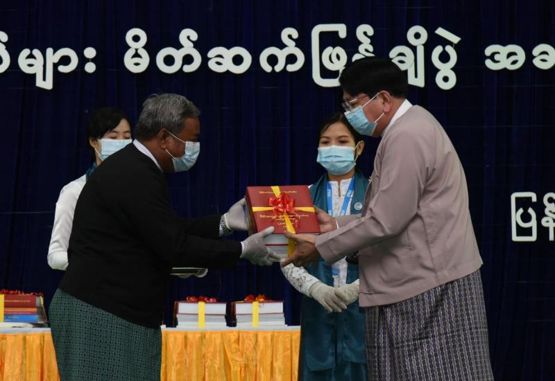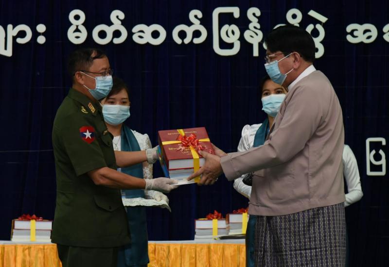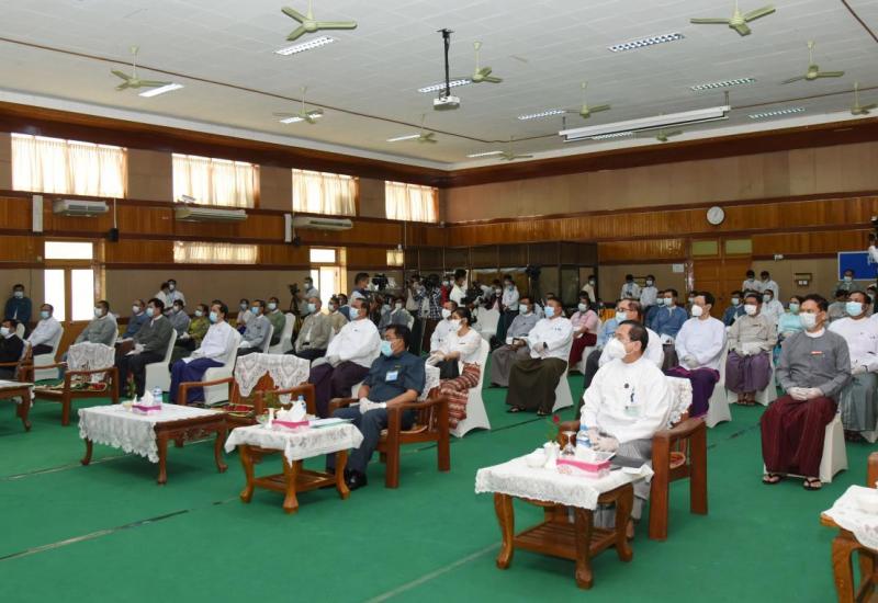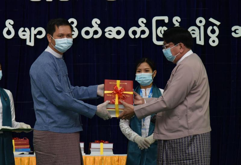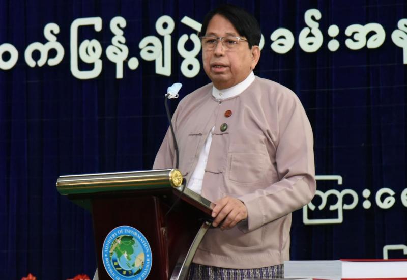 ၂၀၂၁-၂၀၂၂ ပညာသင်နှစ်အတွက် ကျောင်းသုံးစာအုပ်များကို ပုဂ္ဂလိကလုပ်ငန်းရှင်များအား အပ်နှံ ဆောင်ရွက်ရာတွင် လိုက်နာဆောင်ရွက်ရမည့် အချက်များ အသိပေးရှင်းလင်းခြင်းကို ယနေ့ မွန်းလွဲ ၂ နာရီတွင် နေပြည်တော်ရှိ ပြန်ကြားရေးဝန်ကြီး ဌာန စုဝေးခန်းမကြီး၌ ပြုလုပ်သည်။