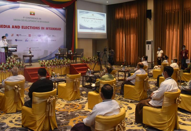 မြန်မာနိုင်ငံရှိ မီဒီယာနှင့် ရွေးကောက်ပွဲများ ခေါင်းစဉ်ဖြင့် အဋ္ဌမအကြိမ် မီဒီယာ ဖွံ့ဖြိုးတိုးတက်ရေး ညီလာခံကို ယနေ့မွန်းလွဲ ၂ နာရီတွင် နေပြည်တော်ရှိ Park royal ဟိုတယ်၌ ကျန်းမာရေးနှင့် အားကစားဝန်ကြီးဌာနမှ ထုတ်ပြန်ထားသော ကိုဗစ်-၁၉ ကာကွယ်ထိန်းချုပ်ရေး ညွှန်ကြားချက်များနှင့် အညီ ကျင်းပသည်။
