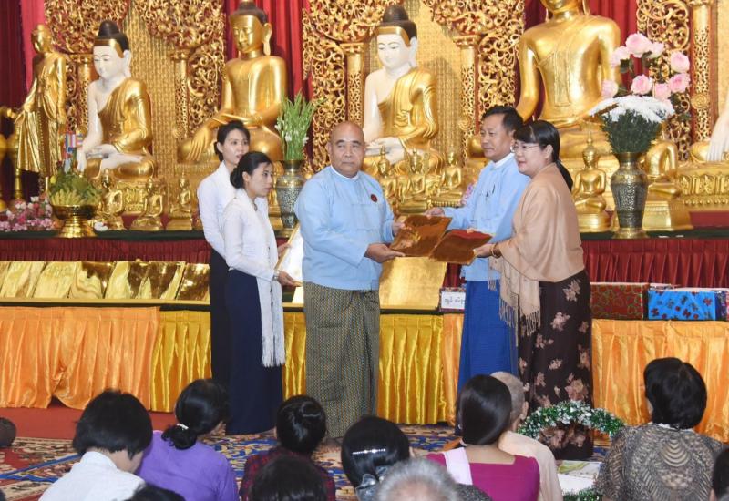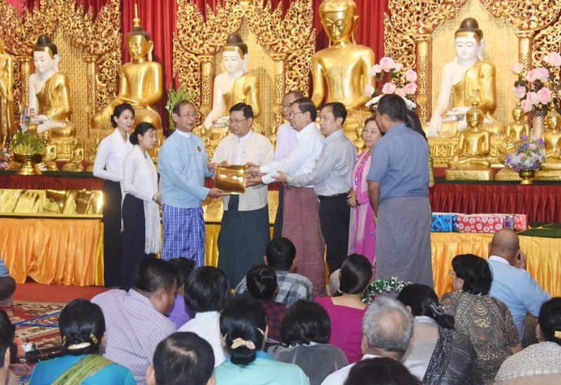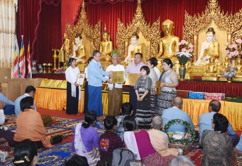 ရှေးဦးစွာ အလှူရှင်များက အလှူတော်ငွေများကို ပေးအပ်လှူဒါန်းရာ ဘဏ္ဍာတော်ထိန်းဂေါပကအဖွဲ့ အလှည့် ကျသဘာပတိနှင့် အဖွဲ့ဝင်များကလက်ခံပြီး ထုတိအနုမောဒနာ ဂုဏ်ပြုမှတ်တမ်းလွှာများ ပြန်လည်ပေး အပ်သည်။