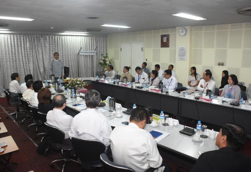 အစည်းအဝေးတွင် ကျောင်းသုံးပြဋ္ဌာန်းစာအုပ် တင်ဒါလက်ခံရေးနှင့် စိစစ်ရေးကော်မတီ ဥက္ကဋ္ဌ ဒုတိယဝန်ကြီး ဦးအောင်လှထွန်း က အဖွင့်အမှာစကား ပြောကြားသည်။