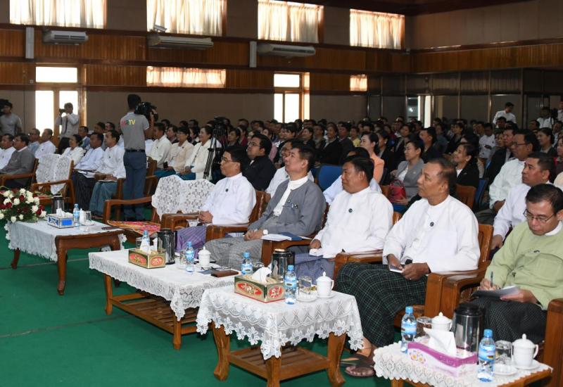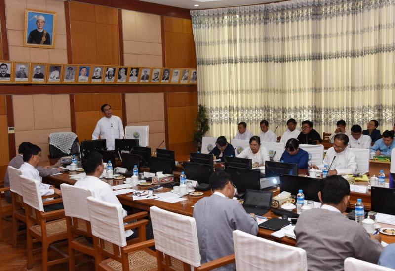 ၂၀၂၀-၂၀၂၁ ပညာသင်နှစ်အတွက် ကျောင်းသုံးစာအုပ်များ ရိုက်နှိပ်၊ ထုတ်ဝေ၊ ဖြန့်ဖြူးနိုင် ရေးဆောင်ရွက်နေမှု ရှင်းလင်းတင်ပြခြင်း အခမ်းအနားကို ယနေ့ မွန်းလွဲ ၁ နာရီ တွင် နေပြည် တော်ရှိ ပြန်ကြားရေးဝန်ကြီးဌာန ဝန်ကြီးရုံး အစည်းအဝေးခန်းမ၌ ကျင်းပ သည်။