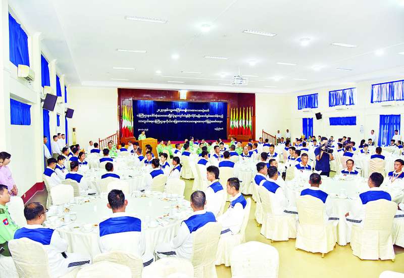 အကြမ်းဖက်မှုတိုက်ဖျက်ရေးဗဟိုအဖွဲ့အစည်းအဝေး (၂၀၂၄) ကို ယနေ့မွန်းလွဲ ၁ နာရီတွင် နေပြည်တော်ရှိ မြန်မာနိုင်ငံရဲတပ်ဖွဲ့ဌာနချုပ် အရိန္ဒမာခန်းမ၌ ကျင်းပရာ နိုင်ငံတော်စီမံအုပ်ချုပ်ရေးကောင်စီအဖွဲ့ဝင် အကြမ်းဖက်မှုတိုက်ဖျက်ရေးဗဟိုအဖွဲ့ဥက္ကဋ္ဌ ပြည်ထဲရေးဝန်ကြီးဌာန ပြည်ထောင်စုဝန်ကြီး ဒုတိယဗိုလ်ချုပ်ကြီး ရာပြည့်၊ ဗဟိုအဖွဲ့ဒုတိယဥက္ကဋ္ဌများ၊ အဖွဲ့ဝင်များ၊ လုပ်ငန်းကော်မတီနှင့် လုပ်ငန်းအဖွဲ့များမှ ဥက္ကဋ္ဌများနှင့် အတွင်းရေးမှူးများ၊ အဖွဲ့ဝင်များ၊ မြန်မာနိုင်ငံရဲတပ်ဖွဲ့ ရဲချုပ်နှင့် မြန်မာနိုင်ငံရဲတပ်ဖွဲ့ဌာနချုပ်မှ ရဲအရာရှိကြီးများ၊ နေပြည်တော်/ တိုင်းဒေသကြီး/ ပြည်နယ်ရဲတပ်ဖွဲ့များမှ ရဲတပ်ဖွဲ့မှူးများ တက်ရောက်ကြသည်။