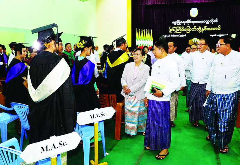 စိုက်ပျိုးရေး၊ မွေးမြူရေးနှင့် ဆည်မြောင်းဝန်ကြီးဌာန မွေးမြူရေးဆိုင်ရာဆေးတက္ကသိုလ်၏ (၃၆) ကြိမ်မြောက် ဘွဲ့နှင်းသဘင်အခမ်းအနားကို ယနေ့နံနက်ပိုင်းက ရေဆင်းရှိ အဆိုပါတက္ကသိုလ်၌ကျင်းပရာ ပြည်ထောင်စုဝန်ကြီး ဦးမင်းနောင်၊ ဒုတိယဝန်ကြီးများ၊ ဌာနဆိုင်ရာအကြီးအကဲများ၊ ပါမောက္ခချုပ်များ၊ ပါမောက္ခဌာနမှူးများနှင့် ဆရာ ဆရာမများ၊ ဘွဲ့ခံ ကျောင်းသား ကျောင်းသူများနှင့် မိသားစုများ တက်ရောက်ကြသည်။