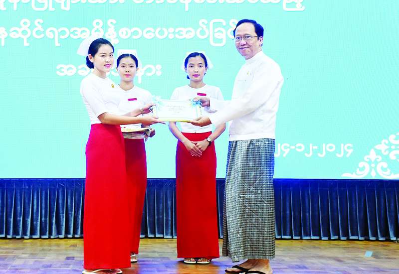 ကျန်းမာရေးဝန်ကြီးဌာန၏ သစ်လွင်သူနာပြုများ တာဝန်ပေးအပ်သည့် ဌာနဆိုင်ရာ အမိန့်စာပေးအပ်ခြင်း အခမ်းအနားကို ယနေ့မွန်းလွဲ ၂ နာရီတွင် ကျန်းမာရေးဝန်ကြီးဌာန ရုံးအမှတ်(၄) နေပြည်တော်၌ Hybrid စနစ်ဖြင့် ကျင်းပသည်။