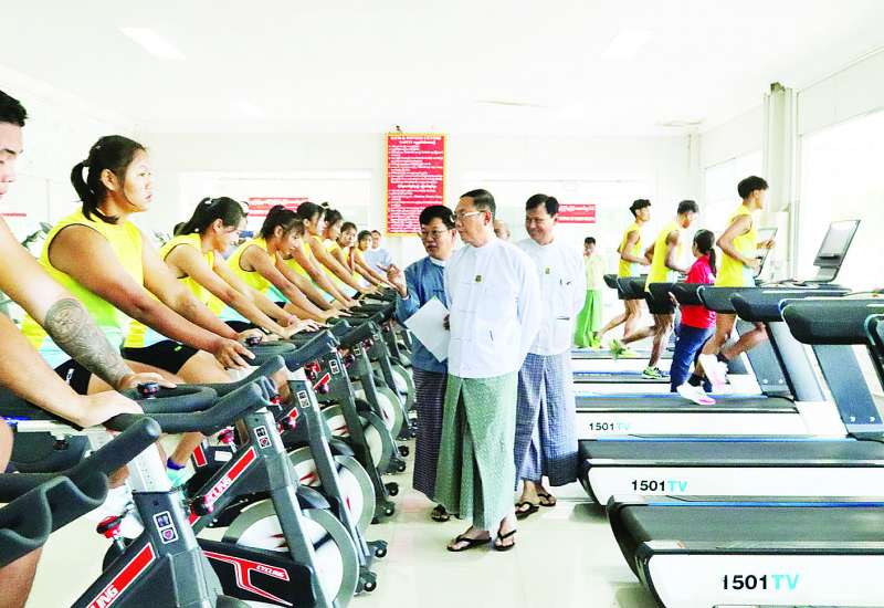 သယံဇာတနှင့်သဘာဝပတ်ဝန်းကျင်ထိန်းသိမ်းရေးဝန်ကြီးဌာန ပြည်ထောင်စုဝန်ကြီး ဦးခင်မောင်ရီသည် ယနေ့နံနက်ပိုင်းက ပဉ္စမအကြိမ် အမျိုးသားအားကစားပွဲတော်တွင် ဝင်ရောက်ယှဉ်ပြိုင်မည့် ဝန်ကြီးဌာနကိုယ်စားပြု အားကစားသမားများလေ့ကျင့်နေမှုကို သွားရောက်ကြည့်ရှုအားပေးသည်။