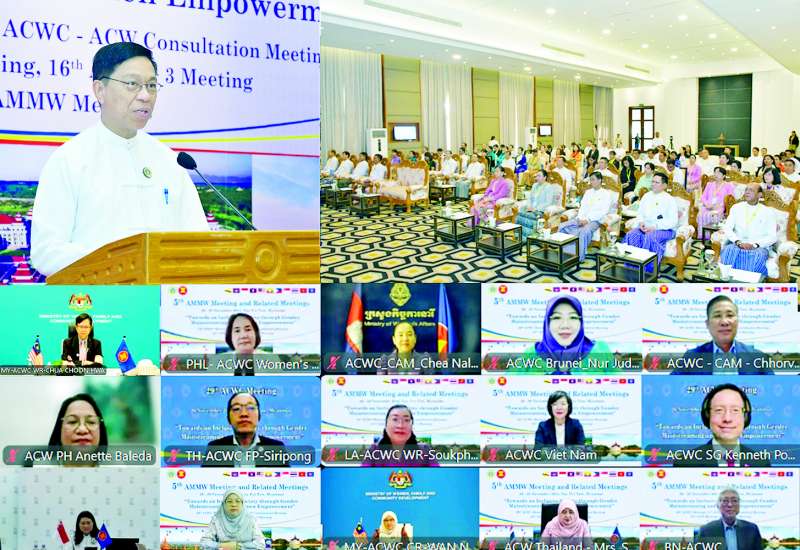 အာဆီယံအတွင်းရေးမှူးချုပ်ရုံးက ကြီးမှူး၍ မြန်မာနိုင်ငံက အိမ်ရှင်အဖြစ် ကျင်းပသော ပဉ္စမအကြိမ်မြောက် အာဆီယံအမျိုးသမီးရေးရာဝန်ကြီးအဆင့်အစည်းအဝေးနှင့် ဆက်စပ်အစည်းအဝေးများ (5th ASEAN Ministerial Meeting on Women – 5th AMMW and Related Meetings)၏ ဖွင့်ပွဲအခမ်းအနားကို ယနေ့နံနက် ၉ နာရီတွင် နေပြည်တော် M.Gallery ဟိုတယ်၌ ကျင်းပသည်။